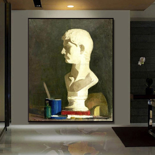 Vivolux | Ölmalerei Traditionelle Leinwand Männliche Skulptur in Weiß, Mehrere Größen Verfügbar