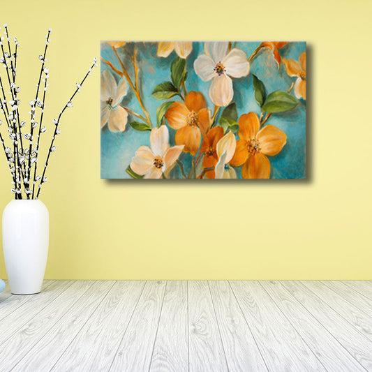 Vivolux | Orange-Weiße Blumenblüte Malerei Texturiertes Bauernhaus Wohnzimmer Wandkunst Druck