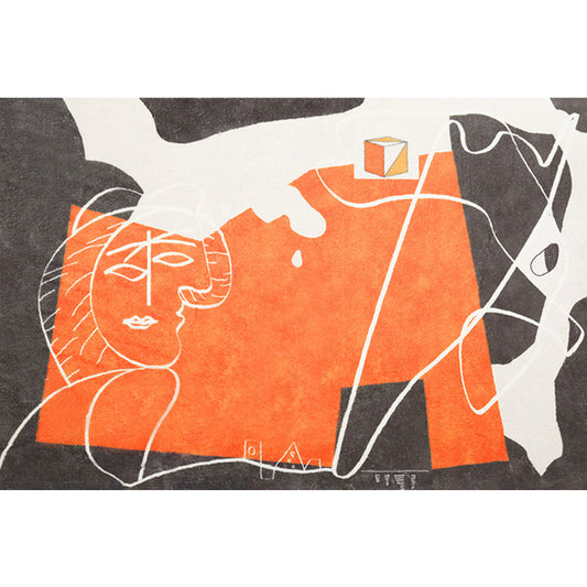 Vivolux | Orangenes schlafendes Frau Wanddekoration Weltkultur strukturierten Leinwanddruck für Schlafzimmer