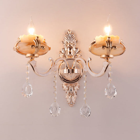 Vivolux | Retro Bud Wandlamp Rimpelglas Wandverlichting met Kristal Draperen in Verouderd Zink