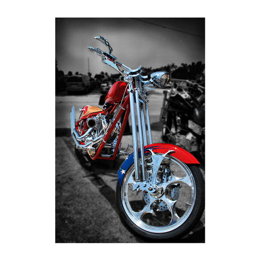 Vivolux | Rote Motorrad Wandkunst Dekor Verkehr Zeitgenössische Texturierte Leinwand für Jungenzimmer