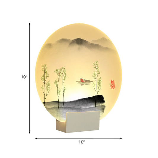 Vivolux | Runder Akryl Rivier en Berg Muurschildering Licht Chinese Stijl LED Bruin Wandmontage Lichtarmatuur