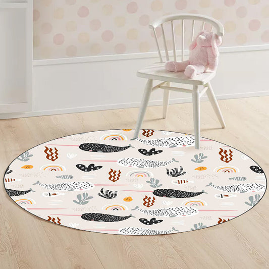 Vivolux | Schattig Kindertapijt in IVORY Tier Walvis Bladeren Muster Teppich Polyester Antirutsch Waschbar Teppich für Kinderzimmer