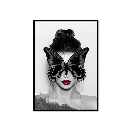Vivolux | Schmetterlingsmaske Mädchen Wanddekoration Vintage Leinwand Texturiertes Gemälde in Grau, Multiple Größen