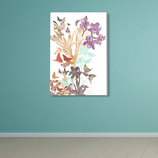 Vivolux | Schmetterling und Blume Leinwanddruck Helle Farbe Traditionelle Wanddekoration für das Mädchenzimmer