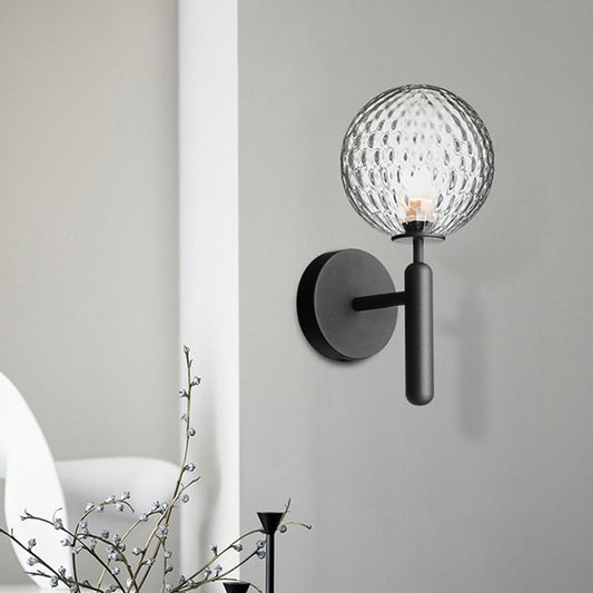 Vivolux | Schwarze Globe-Wandlampe Minimalistisches Dimple-Glas Einzelne Glühbirne Badezimmer Wandmontierte Lichtarmatur