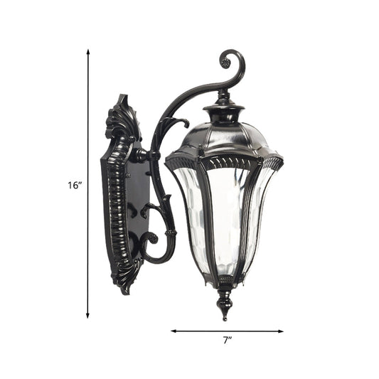 Vivolux | Schwarze Finish Urnen Wandleuchte Bauernhaus Klares Dimpled Glas 1 Kopf Außenwandleuchte Leuchte
