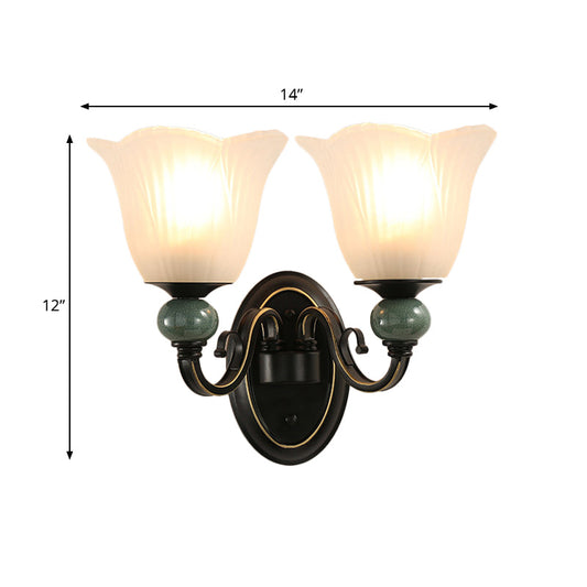 Vivolux | Schwarze Fließende Wandlampe Traditionelles Opal Rippenglas 1/2-Birnen Schlafzimmer Wandleuchte mit Wirbelarm