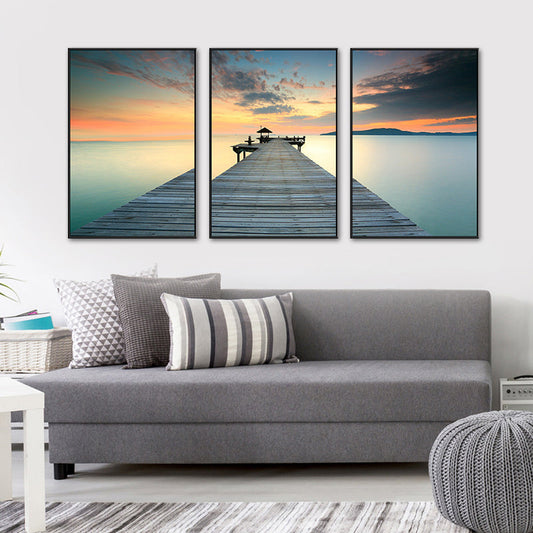 Vivolux | Seaside Bridge Scene Art Print Moderne Canvas Multi-Piece Schilderij in Zachte Kleur, Set van Drie