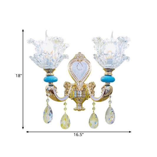 Vivolux | Traditionele Lage Gelaagde Bloem Muur Verlichtingskit 1/2-Kop Duidelijke Kristallen Muurverlichting in Goud-Blauw