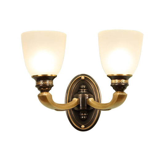 Vivolux | Traditionelle Glockenschirm-Wandleuchte 1/2-Licht Frosted-Glas Wandleuchte in Messing für Flur