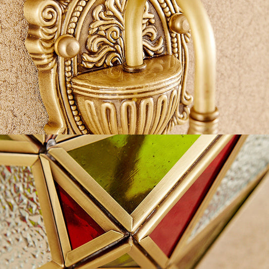 Vivolux | Traditionelle konische Wandlampe mit strukturiertem Glas 1-Birnen-Wandleuchte in Messing mit gebogenem Arm