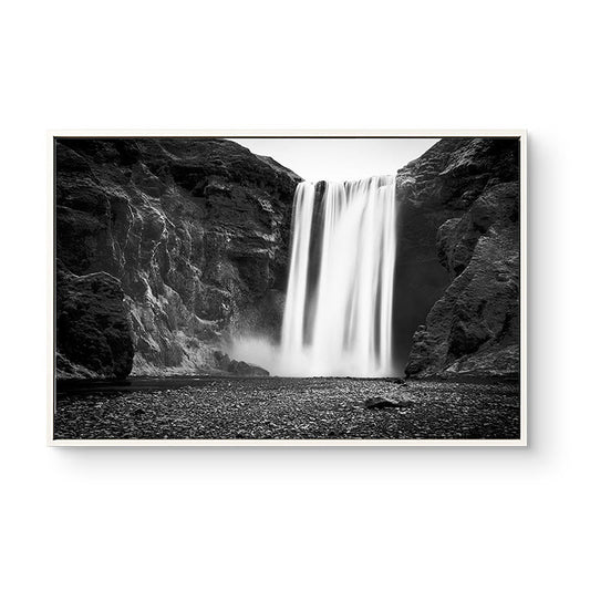Vivolux | Vintage Wasserfall und Berg Canvas Schwarz Badezimmer Wandkunst Druck, Mehrere Größen
