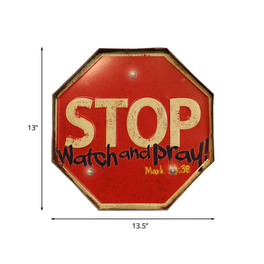 Vivolux | Vintage stijl LED wandlamp licht rood waarschuwingsbord nachtlamp met ijzeren kap