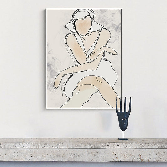 Vivolux | Weiße Linienkunst Frau Leinwanddruck Figur Minimalistische Texturierte Wanddekoration für Schlafzimmer