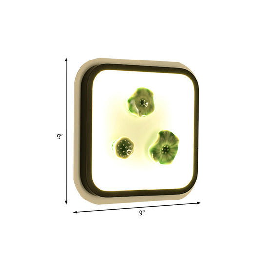 Vivolux | Weiße und schwarze quadratische Lotus-Wandmural-Lampe im chinesischen Stil LED-Porzellan-Wandmontage-Leuchte