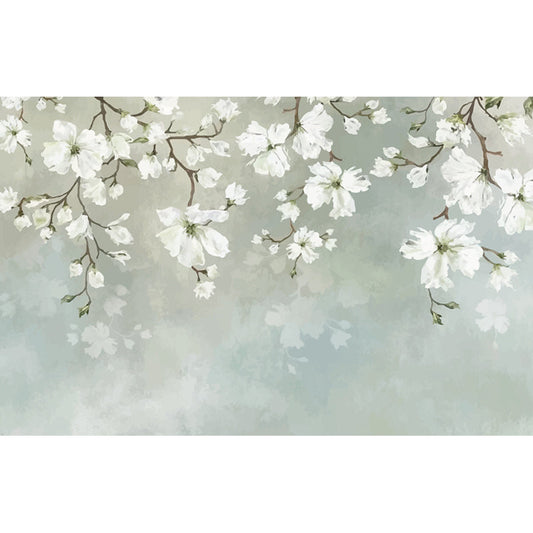 Vivolux | Witte Bloeiende Bloem Wanddecoratie Vochtbestendige Muurkunst op Blauw voor Thuis
