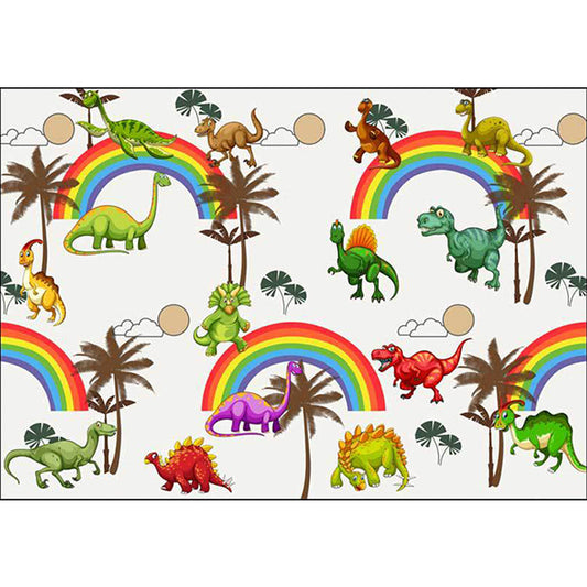 Vivolux | Witte Kinderkamer Tapijt Kinderen Dier Dinosaurussen Regenboog Boom Patroon Gebied Tapijt Polyester Wasbaar Huisdiervriendelijk Vloerkleed
