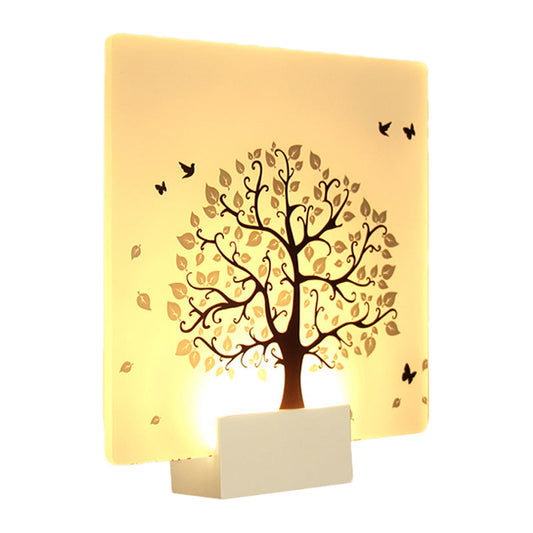 Vivolux | Witte Vierkante Boom en Vogel Wandlamp Nordic Stijl LED Acryl Muur Lamp voor Woonkamer