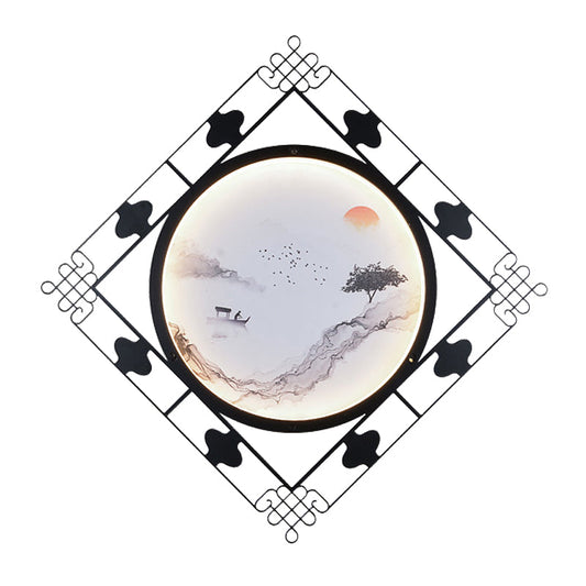 Vivolux | Woonkamer LED Muurverlichting Chinese Zwarte Wandmontage Fixture met Ruitvormig Metalen Frame