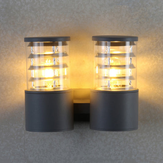 Vivolux | Zylinder Klar Glas Wandbeleuchtung Wandleuchte Land 2 Lichter Außen Wandmontierte Lampe in Grau mit Innen Mehrfachkreis