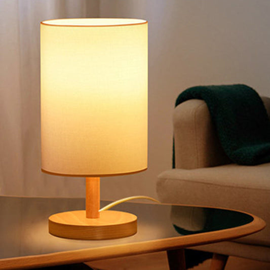 Vivolux | Traditionelle japanische Zylinder Holzstoff 1-Licht Tischlampe für das Wohnzimmer