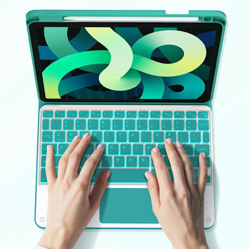PU-Lederhülle: Diese Tastatur wird von einer stilvollen und robusten PU-Lederhülle umschlossen, die nicht nur für ein ansprechendes Aussehen sorgt, sondern auch Ihr iPad vor Kratzern und Beschädigungen schützt. Das hochwertige Material garantiert eine lange Haltbarkeit und ist somit perfekt für den täglichen Einsatz.