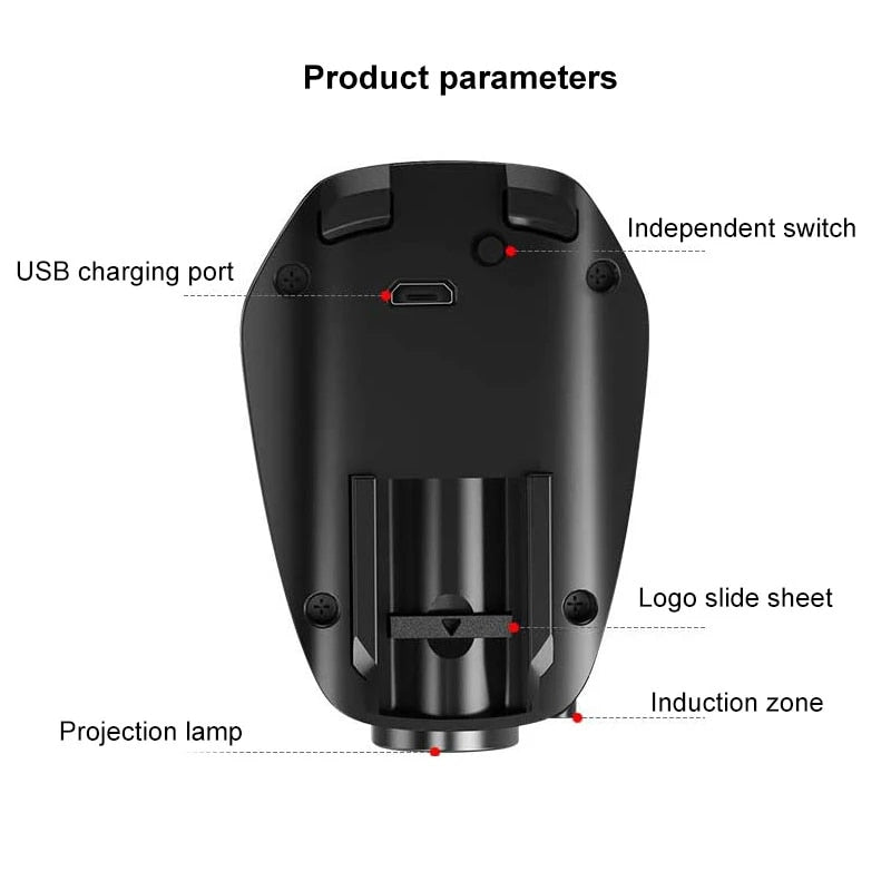 2.Das verbesserte Auto-Projektionslicht nutzt einen intelligenten Infrarotsensor, der das Licht ausschalten kann, ohne dass ein Magnet in der Tür installiert werden muss.