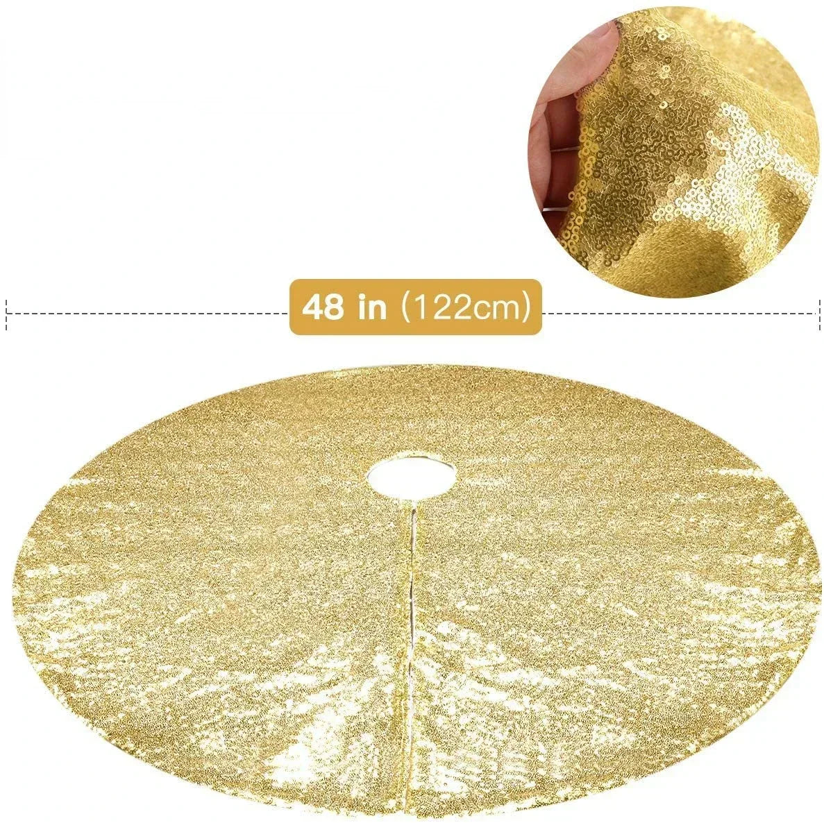 Größe und Material: Mit einem Durchmesser von 122 cm ist dieser Baumrock groß genug, um den dekorativen Anforderungen von verschiedenen Weihnachtsbaumgrößen gerecht zu werden. Das beidseitige Design und die hervorragende Verarbeitung sorgen dafür, dass eine Seite mit hochdichten, dreidimensionalen Pailletten versehen ist, die aus jedem Blickwinkel leuchtende Farbtöne zeigen.