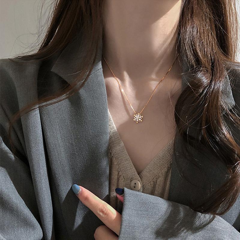 Die Halsbänder mit Schneeflocken bestehen aus Kupfer und erhalten eine hochglänzende Politur; Der strahlende, klare Zirkon hat einen hervorragenden Brechungsindex, was zu seinem brillanten Funkeln führt. Länge der Schneeflockenkette: 40cm + 5cm