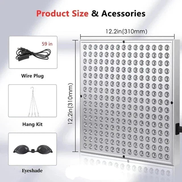 Anzahl der LEDs: 225 (113 Stück 660nm rotes Licht, 112 Stück 850nm Infrarotlicht)