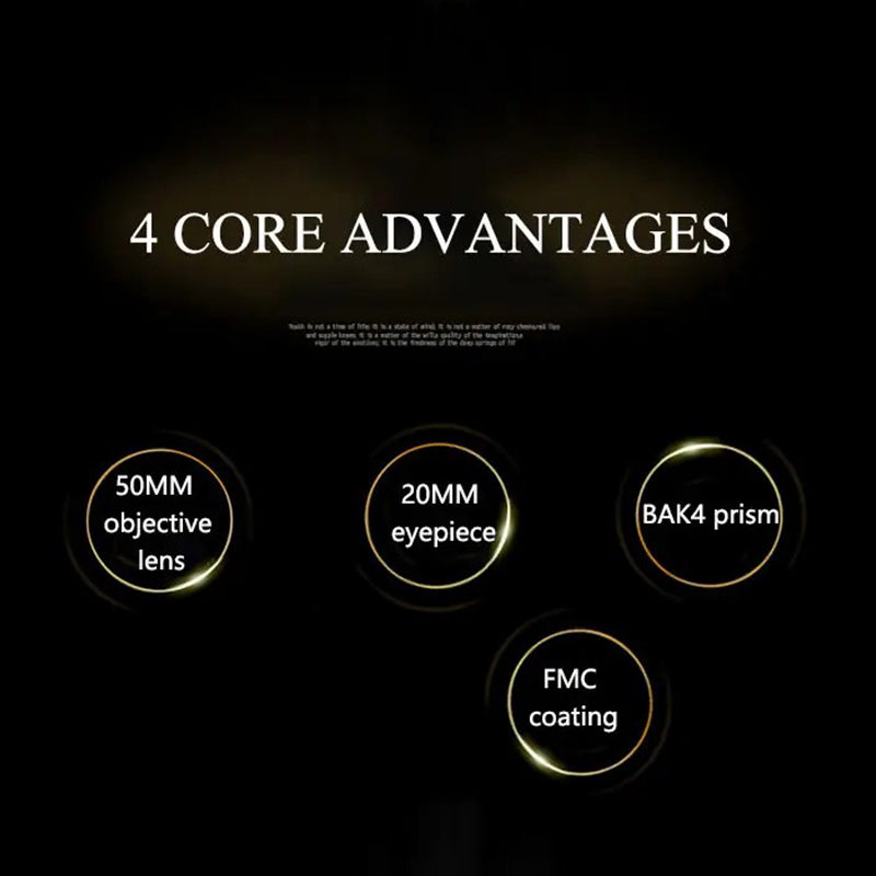• 4 HAUPTVORTEILE- 50 mm Objektivlinse, 20 mm Okular, BAK4-Prisma, FMC-Beschichtung