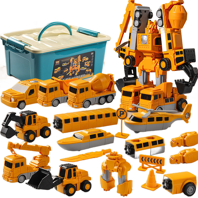 TRANSFORMATIONS-DESIGN: Die im Set enthaltenen Autos, wie Lkw, Gabelstapler, Bagger und mehr, können in Roboter verwandelt werden, was für kontinuierliche Unterhaltung und Erkundung sorgt.