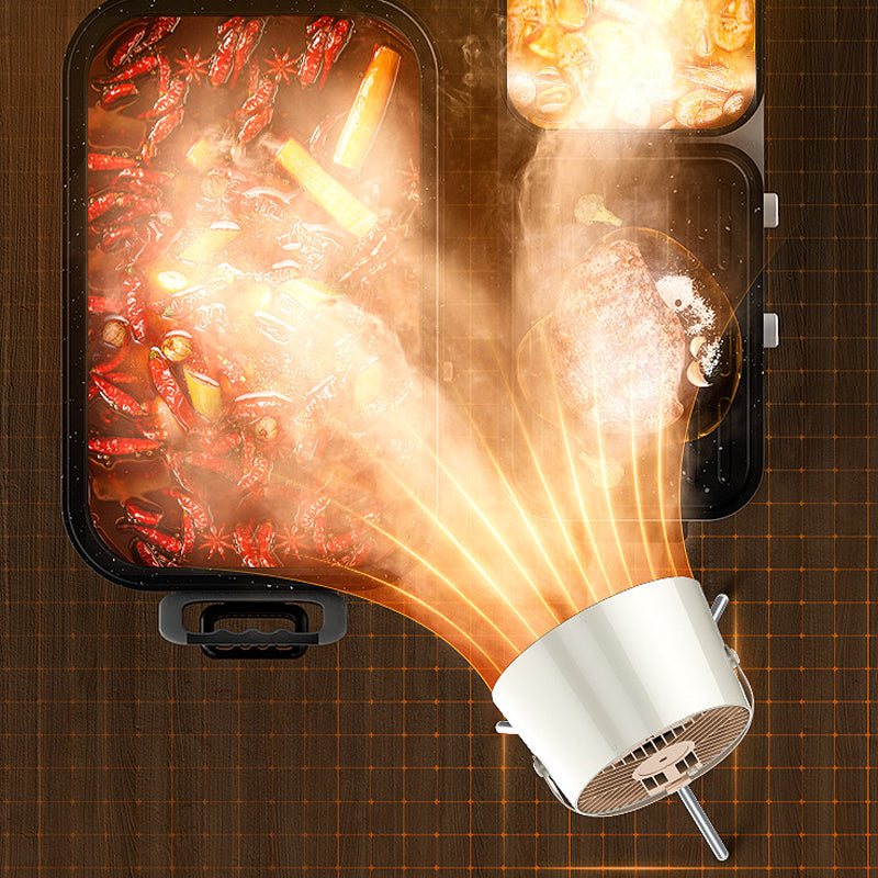 Mehrfachfiltration: Verwendet hochwirksame Adsorptionspolymerfilter zur effektiven Entfernung von Fett und Rauch. Durch die leistungsfähige Saugtechnologie werden die meisten Rußpartikel eingefangen und Ruß sowie Gerüche effektiv beseitigt, um die Luft in Wohn- und Küchenbereichen sauber zu halten.