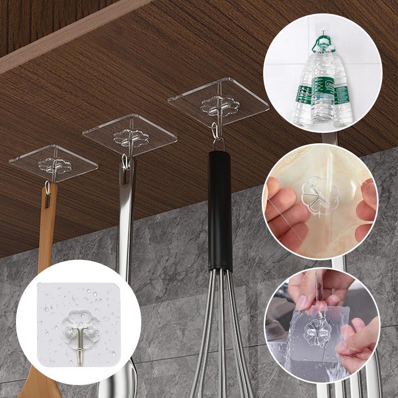 BREITE VERWENDUNG Dieser selbstklebende Haken ist äußerst vielseitig und perfekt für verschiedene Anwendungen in der Küche, im Bad, im Haus, im Wohnzimmer usw. Er haftet auf harten und glatten Oberflächen wie Fliesen, Kühlschränken, Schränken, Marmor, Schindeln, Keramik, Spiegeln, Acryl, Kunststoff, Laminat usw. Kalkhaltige Wände, gestrichene Wände, Gipskartonwände und strukturierte Tapeten sind nicht empfohlen, da sie sonst abfallen oder die Wand beschädigen könnten.