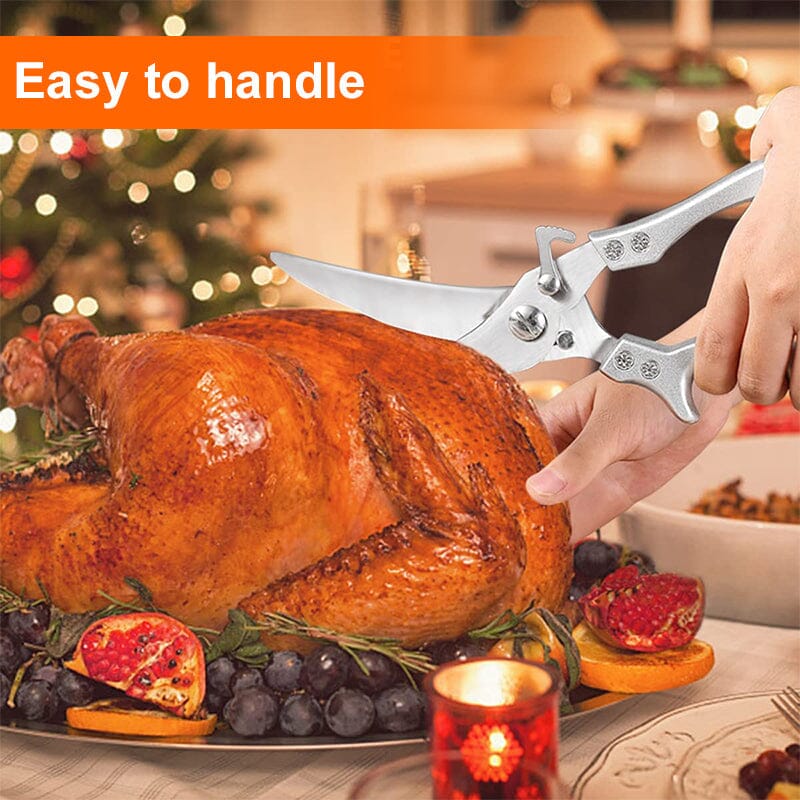 Hochwertige Materialien:Diese robusten Küchenscheren bestehen überwiegend aus hochwertigen Edelstahlklingen und Griffen aus Aluminiumlegierung. Die 3,5 mm dicken Klingen sind schärfer, widerstandsfähig gegen Abrieb und rollen nicht ein.