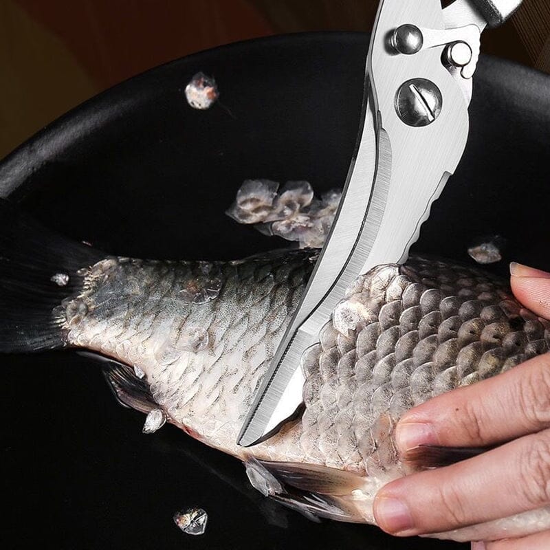 Vielseitige und Scharfe Küchenscheren: Mit scharfen Klingen, robustem Design, einer speziellen Fischschuppen-Schaber-Funktion und einer Flaschenöffner-Funktion, vereinen diese Scheren mehrere Werkzeuge in einem. Ideal zum Schneiden von Knochen, Geflügel, Fleisch und Gemüse, sowie zum mühelosen Öffnen von Flaschen und Schaben von Fischschuppen.