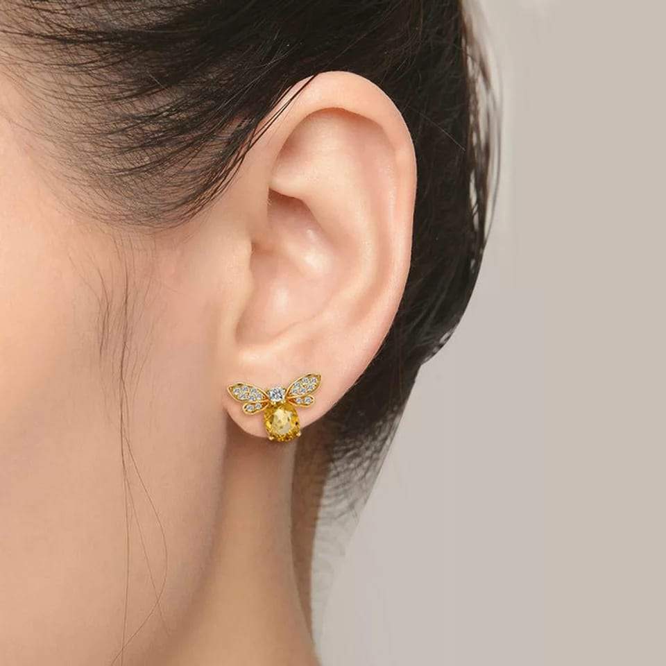 Sterling Silber natürliche Citrin Bienen Ohrringe