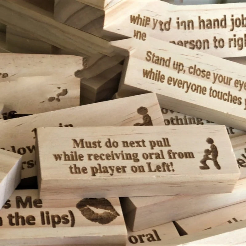 Fesselnd und Unterhaltsam: Diese Version des klassischen Jenga-Spiels für Erwachsene bringt mit kühnen Anweisungen und Herausforderungen eine aufregende Dynamik in das traditionelle Spiel.