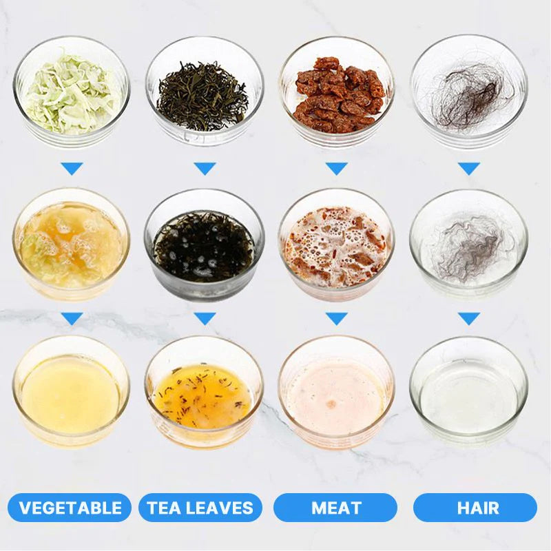 Effiziente Funktion: Es löst Rohrverstopfungen durch Haare, Papier, Seifenreste, Gemüse, Obst, Essensreste, Fett, Fleisch und organische Materialien zügig auf.