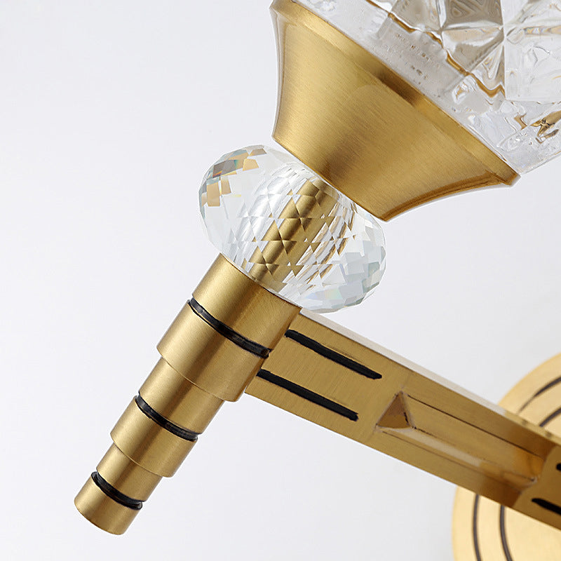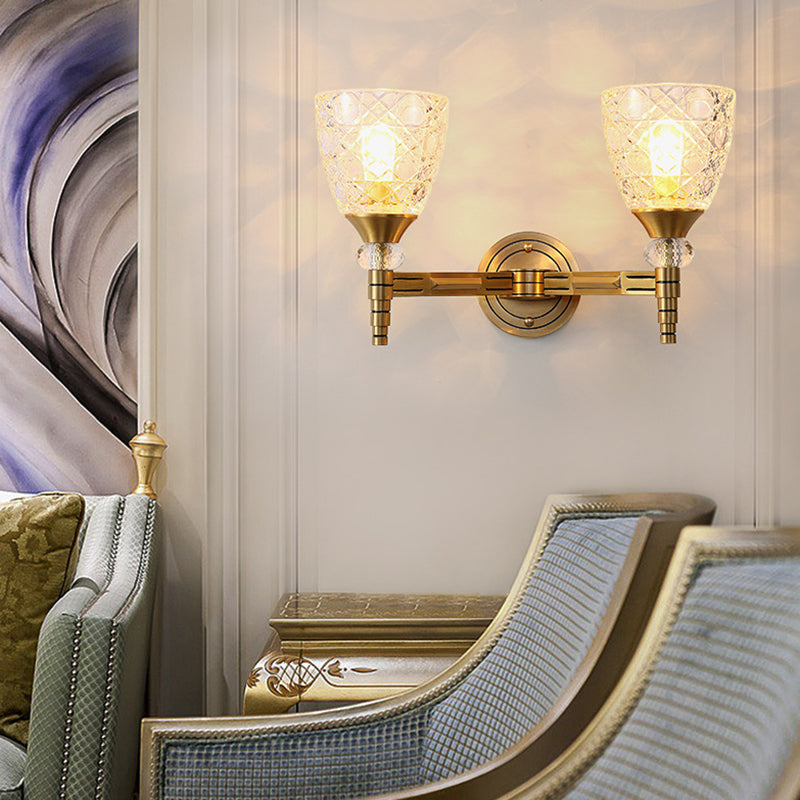 Vivolux | 1/2-Birne Gitterglas Wandlampe mit Schalenlampenschirm Loft Schlafzimmer Wandmontage Licht in Messing-Finish