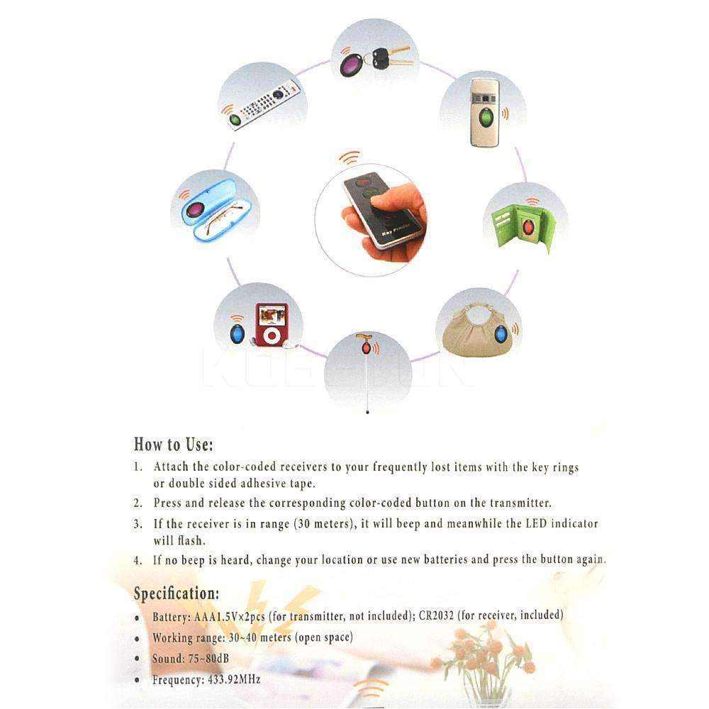 Es ist ganz normal, die Schlüssel zu verlegen. Das passiert uns allen hin und wieder. Entscheidend ist, wie schnell Sie sie wiederfinden können. Dies ist wirklich ein einzigartiger Schlüsselsucher, wie Sie ihn noch nie gesehen haben! Er enthält einen drahtlosen RF-Objektlocator mit LED-Taschenlampe und vier Empfängern. Drücken Sie einfach die Fernbedienung und folgen Sie dem akustischen Signal, um Ihre Schlüssel oder andere verlorene Gegenstände bis zu 30 Meter weit zu locaten.