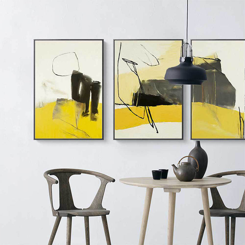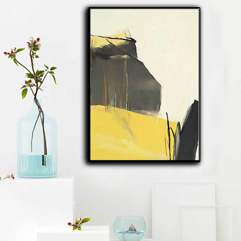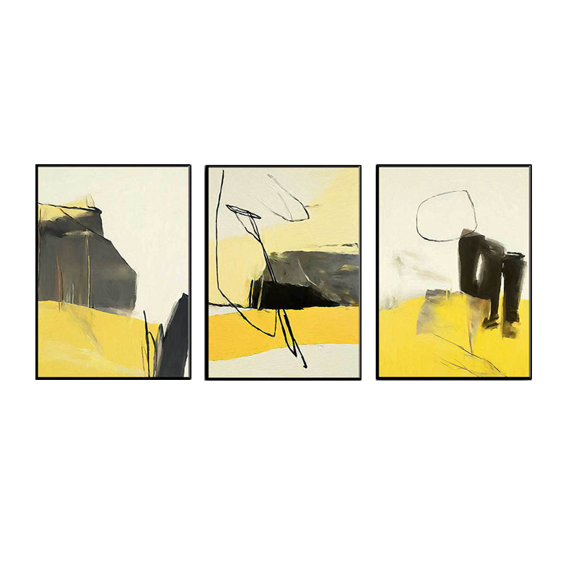 Vivolux | Abstrakte Leinwand Wandkunst Zeitgenössische Texturierte Wanddekoration in Gelb und Schwarz für den Raum