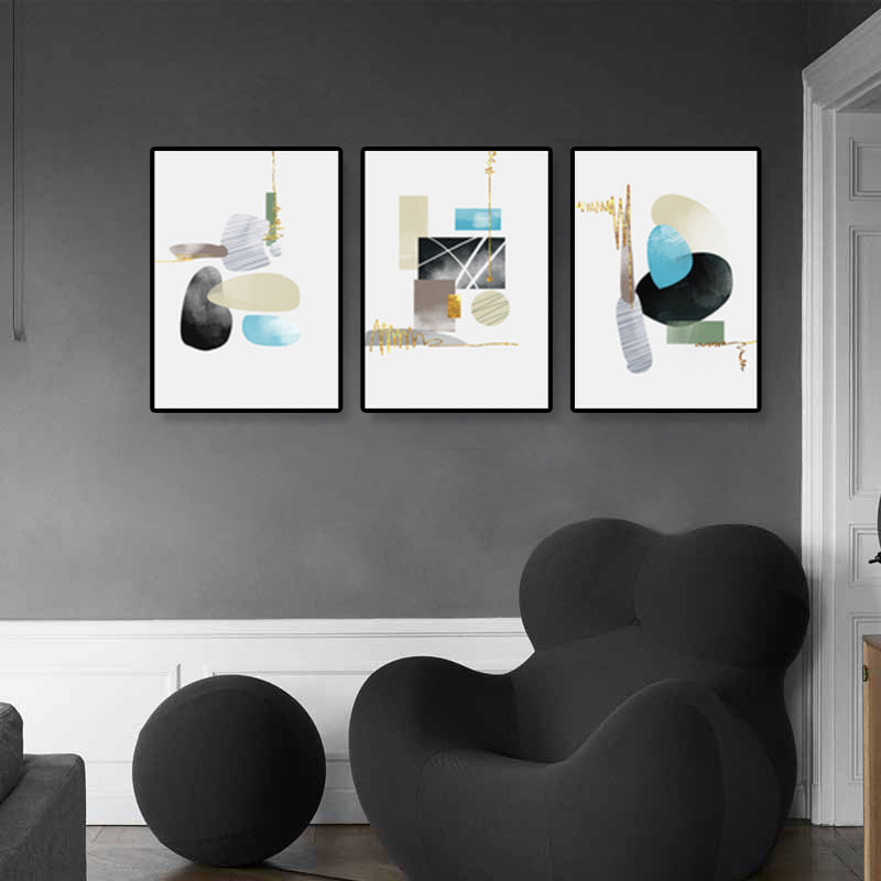Vivolux | Abstrakte Wandkunst Set Haus Innenraum Geometrie Zeichnung Leinwand in Hellfarbe für Dekor