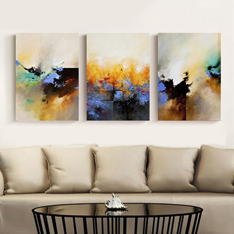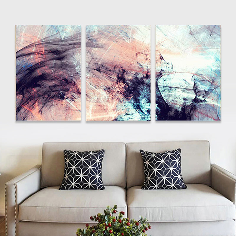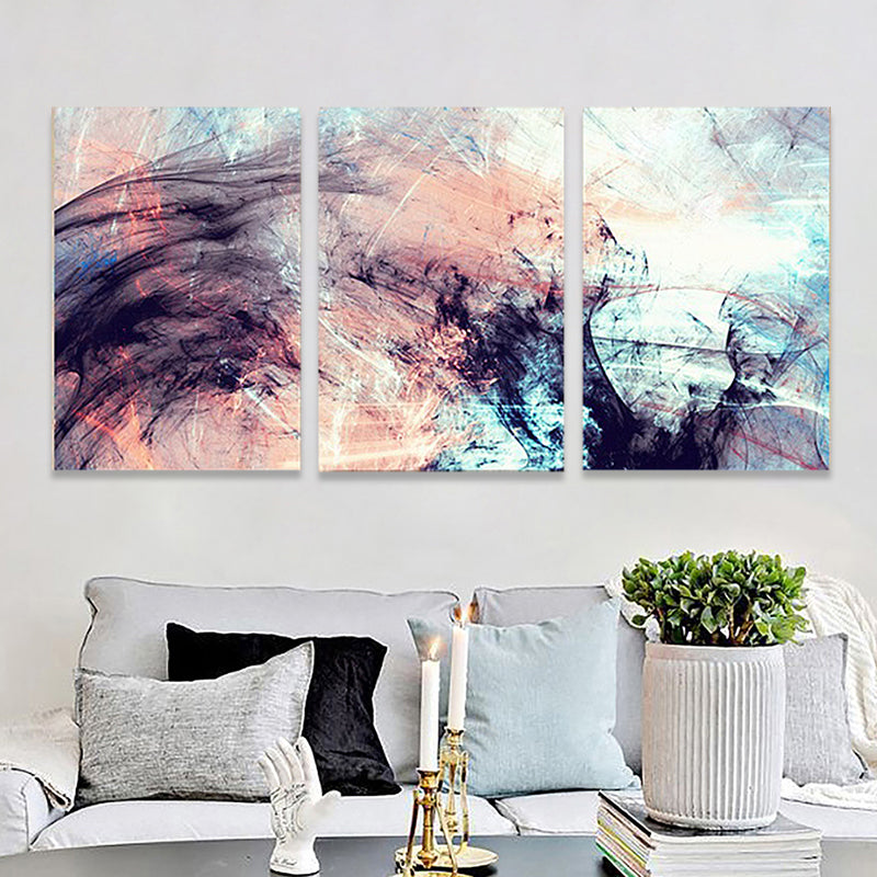 Vivolux | Abstrakter Expressionismus Handgedruckte Leinwand Pastellfarben Mehrteilige Malerei für das Wohnzimmer