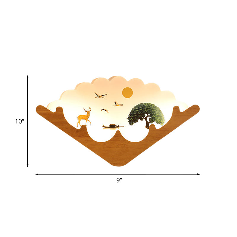 Vivolux | Acryl Fächerförmige Wandlampe Asien Stil LED Holz Wandbild Licht mit Elch und See/Wald Muster