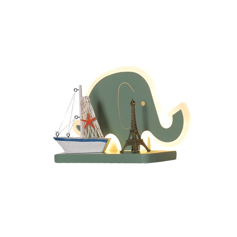 Vivolux | Acryl Olifant/Voertuig/Pompoen Wandlamp Cartoon LED Muur Geïnstalleerd Lamp met Opslag Bureau in Pewter/Geel/Blauw, Wit/Warm Licht