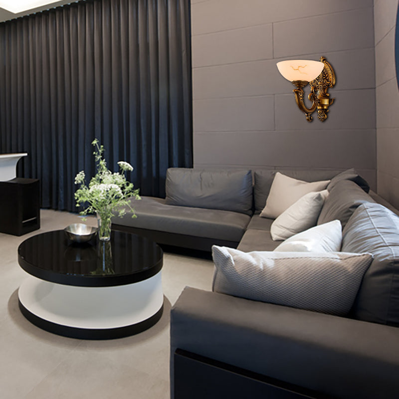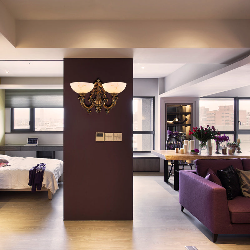 Vivolux | Antik Messing 1/2-Kugel Wandmontage Beleuchtung Kolonialstil Geätztes Glas Schirm Schatten Wandlampe