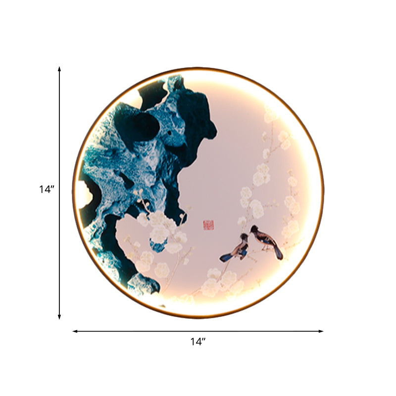 Vivolux | Asien LED Wandlicht Schwarzes Halcyon und Kieferbaum/Vogel und Bergmalerei Wandleuchten Ideen mit Stoffschirm