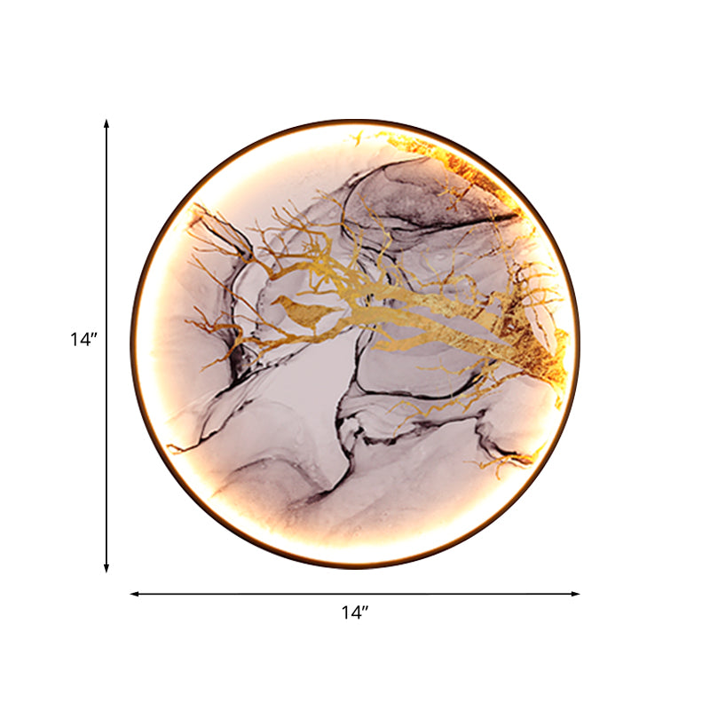Vivolux | Asiatische Blumen/Vogel Stoff Wandbeleuchtung LED Wandlicht Armatur in Schwarz für das Wohnzimmer